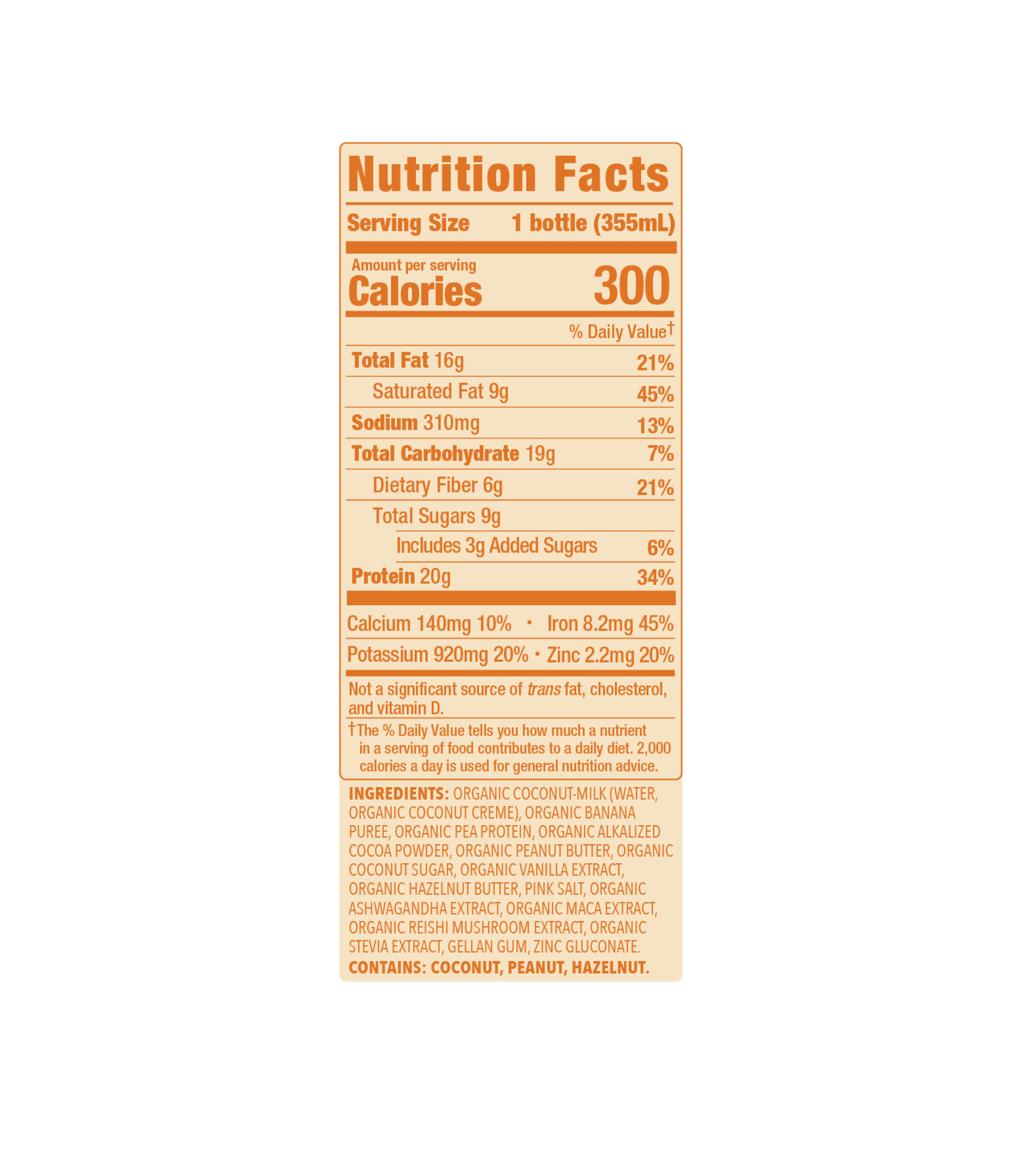 Get 20 grams of plant-powered protein in creamy peanut butter and rich chocolate with real banana puree. Plus adaptogenic Reishi and zinc for immune support.