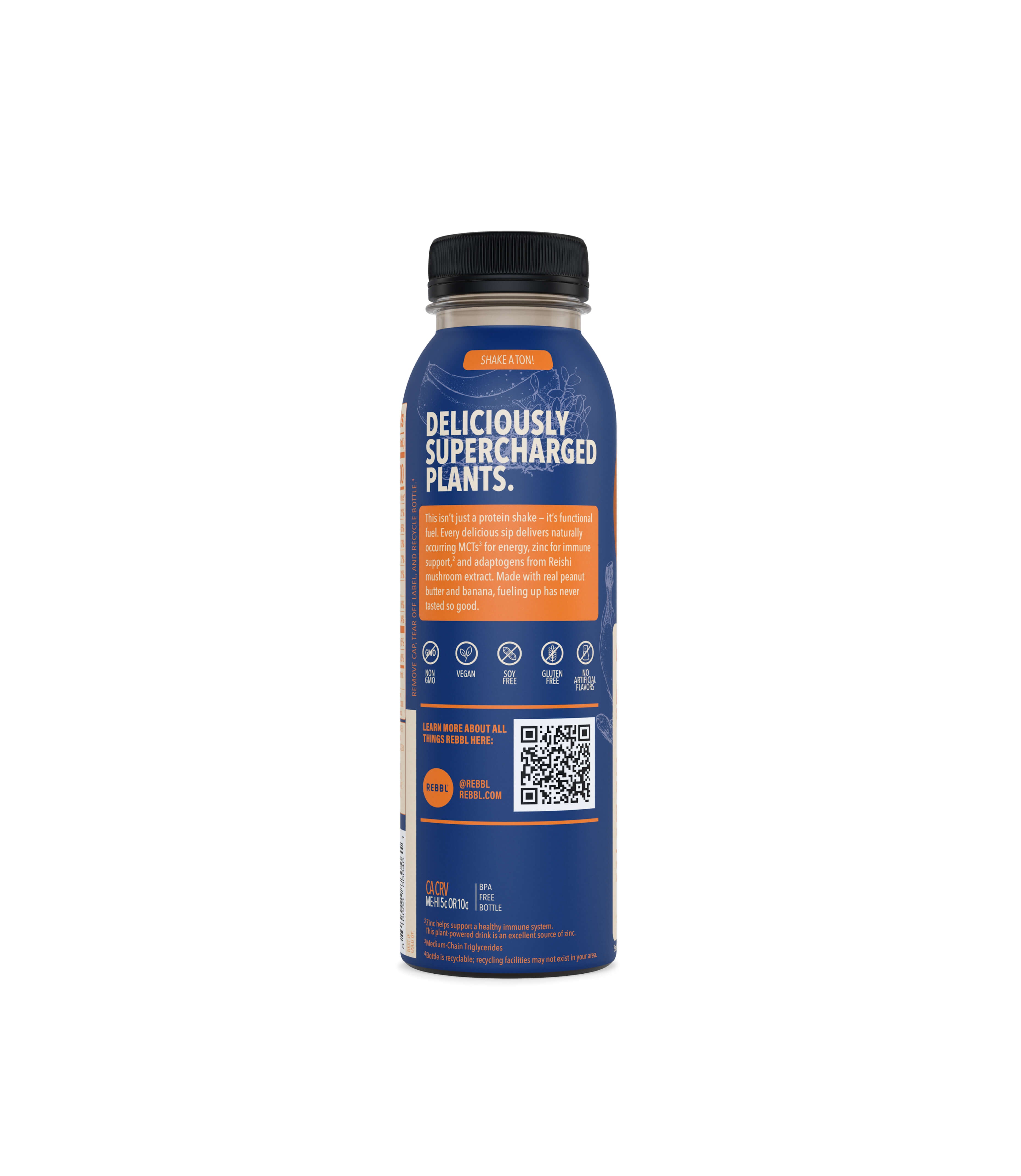 Get 20 grams of plant-powered protein in creamy peanut butter and rich chocolate with real banana puree. Plus adaptogenic Reishi and zinc for immune support.
