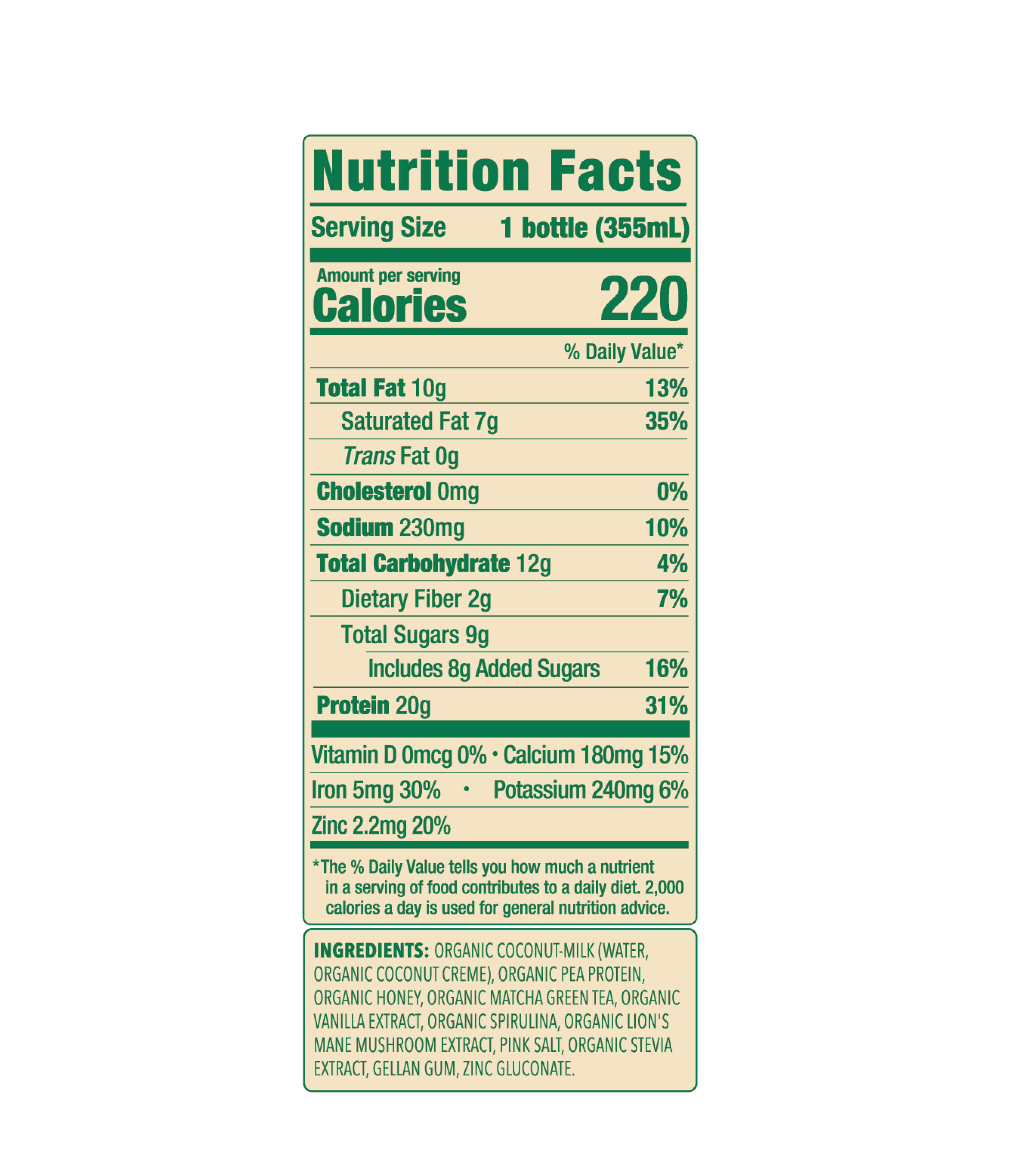 20g Matcha Latte Protein Shake